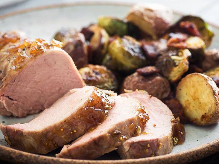 Fig-glazed Pork Loin with Roasted Potatoes and Brussels Sprouts